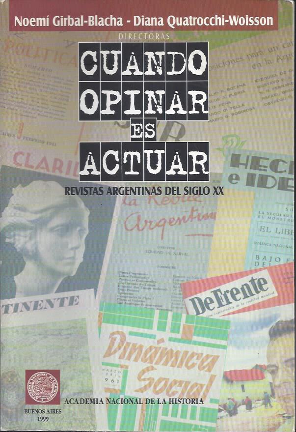 Girbal Blacha, Noemí y Quatrocchi Woisson, Diana. Cuando opinar es actuar. Revistas argentinas del siglo XX.