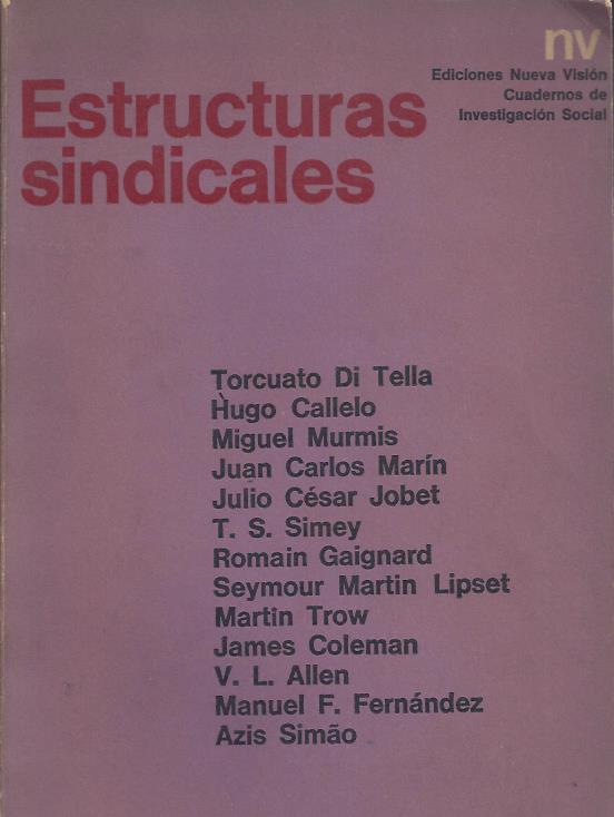 Buenos Aires: Nueva Visión, 1969. en Di Tella, T. y otros. Estructuras sindicales