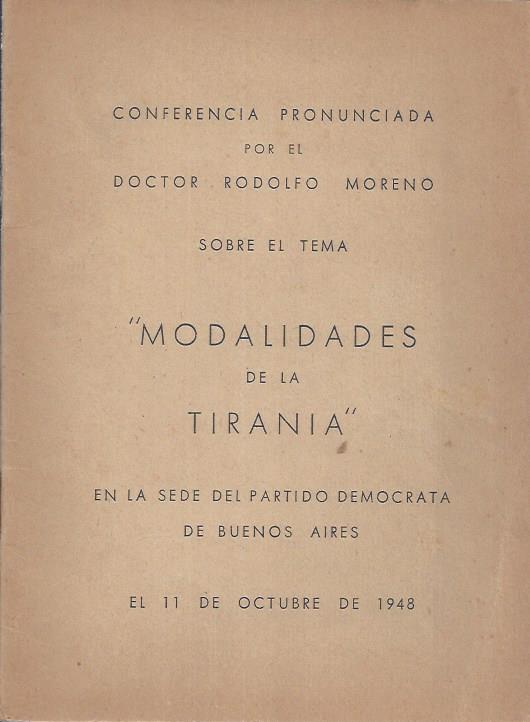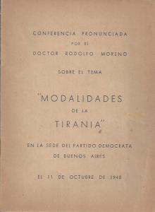 Moreno, Rodolfo. Modalidades de la tiranía.