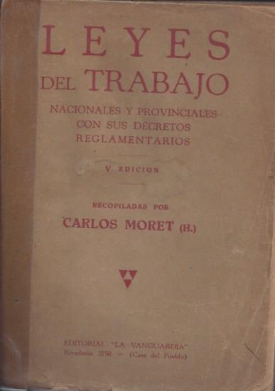 Moret, Carlos. Leyes del trabajo. Nacionales y provinciales con sus decretos reglamentarios.