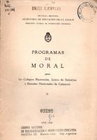 Programas de moral para los Colegios Nacionales, Liceos de Señoritas y Escuelas Nacionales de Comercio. Buenos Aires, 1949.