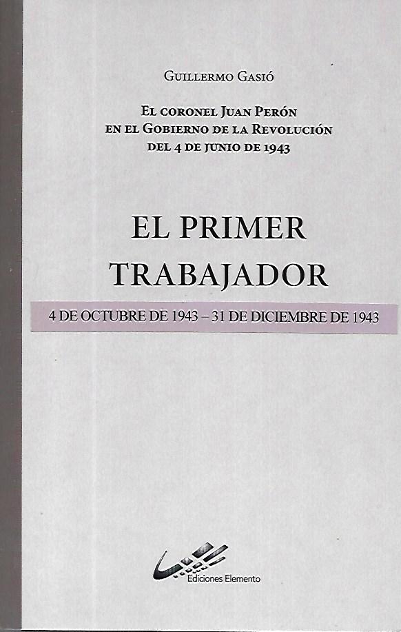 El primer trabajador, 4 de octubre de 1943-31 de diciembre de 1943. El Cnel. J. Perón en el gobierno de la Revolución del 4 de junio de 1943. Editado por Gasió, Guillermo. Buenos Aires: Elemento, 2024.