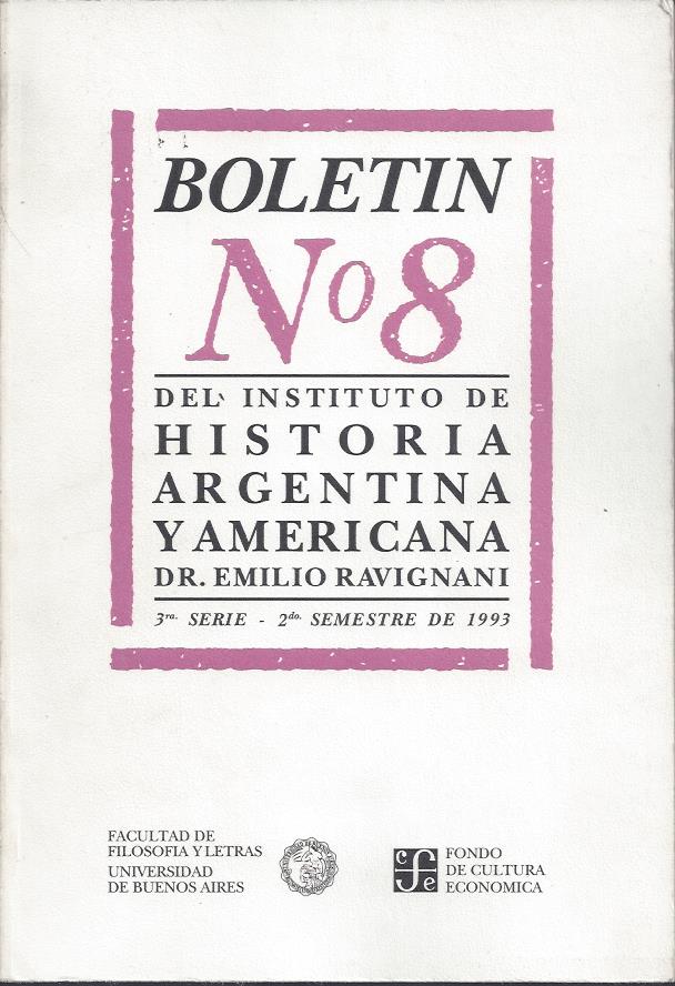 Buenos Aires: Facultad y Fil y Letras-UBA, 1993. en Boletín N° 8 del Instituto de Historia Argentina y Americana Dr. Emilio Ravignani. segundo semestre de 1993