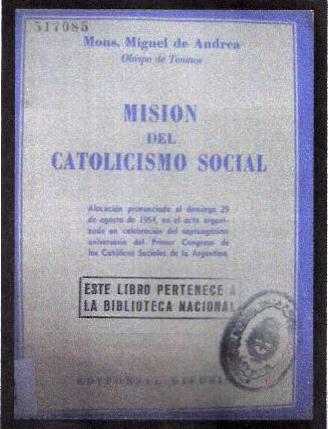 Buenos Aires: Difusión, 1954. Alocución pronunciada el domingo 29 de agosto de 1954, en el acto organizado para celebrar el septuagésimo aniversario del Congreso de Católicos Sociales