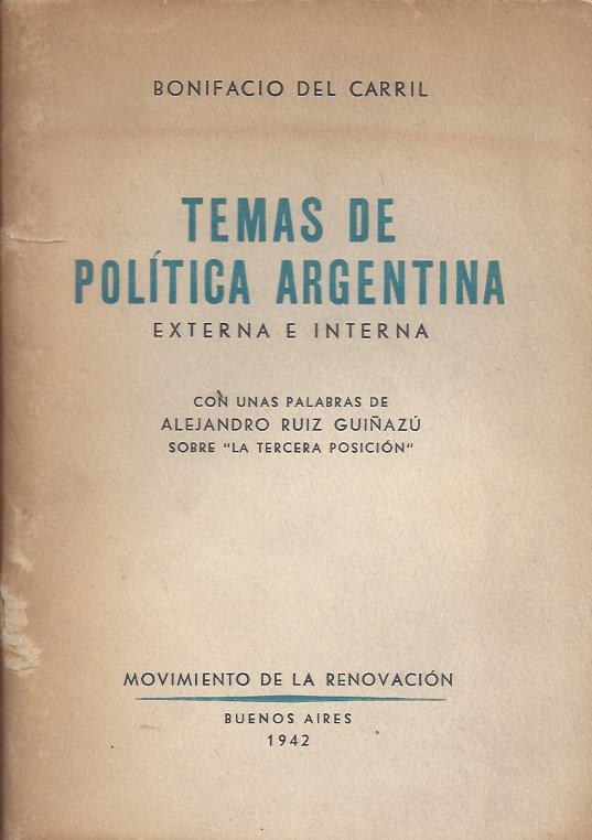 Del Carril, Bonifacio. Temas de política argentina. Externa e interna.