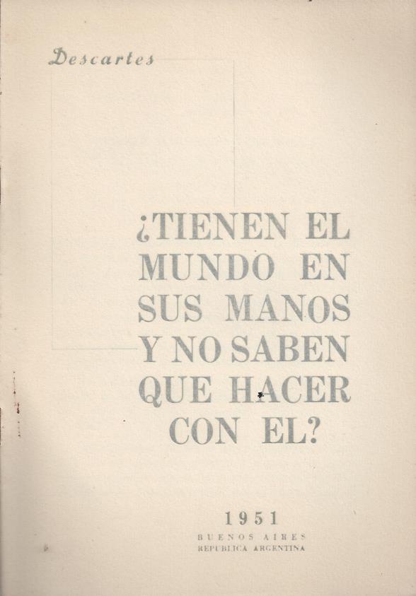 Descartes(seudónimo de J.D.Perón). ¿Tienen el mundo en sus manos y no saben que hacer con él?.