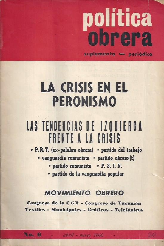 El PRT (Ex - Palabra Obrera) y la crisis del peronismo.