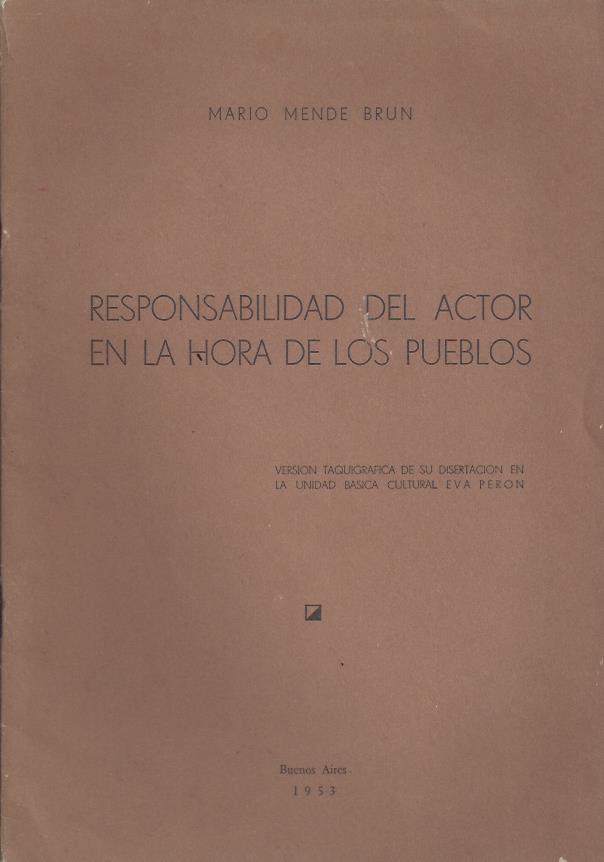 Disertación del Doctor Mario Mende Brun. Secretario de Cultura de la Municipalidad de la Ciudad de Buenos Aires en la Unidad Básica Cultural Eva Perón. Extensión: 24 páginas.