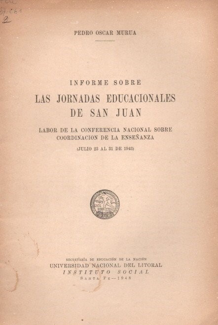 Murua, Pedro. Informe sobre las Jornadas Educacionales de San Juan.