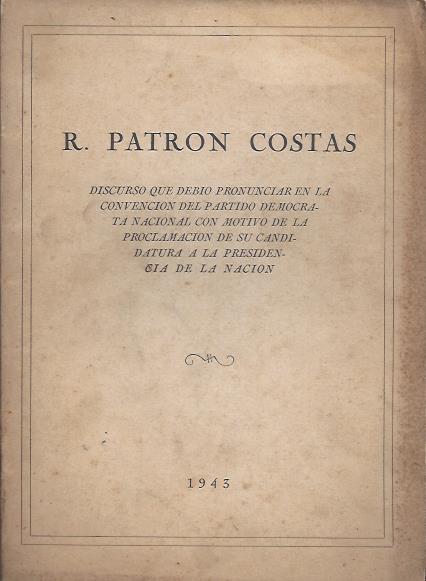 Patrón Costa, Robustiano. Discurso que debió pronunciar en la convencion del Partido Demócrata Nacional con motivo de la proclamación de su candidatura a la Presidencia de la Nación..