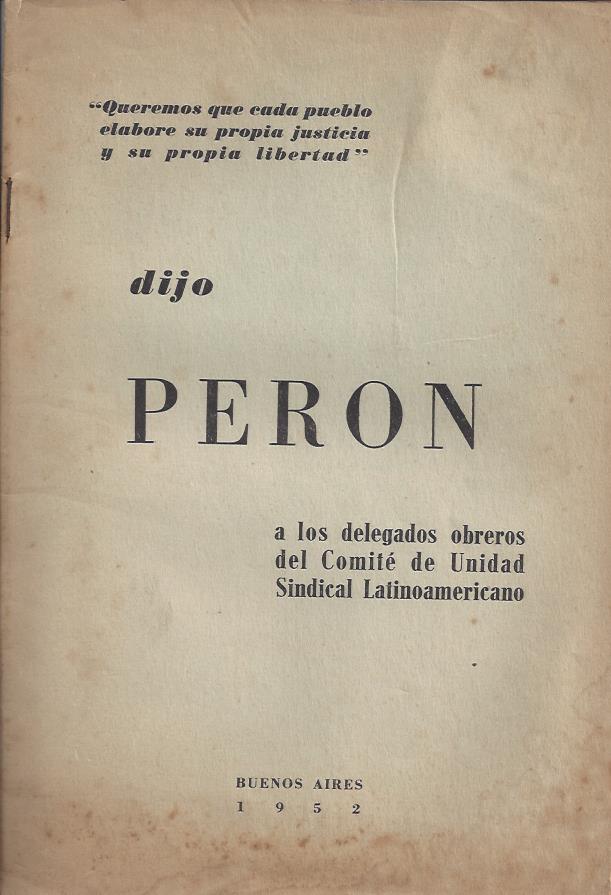 Perón, Juan D. Dijo Perón a los delegados obreros del Comité de Unidad Sindical Latinoamericano..