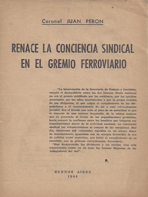 Palabras del Secretario de Trabajo y Previsión Coronel Juan Perón a los ferroviarios reunidos en una cena de camaradería la noche del 3 de junio de 1944.
