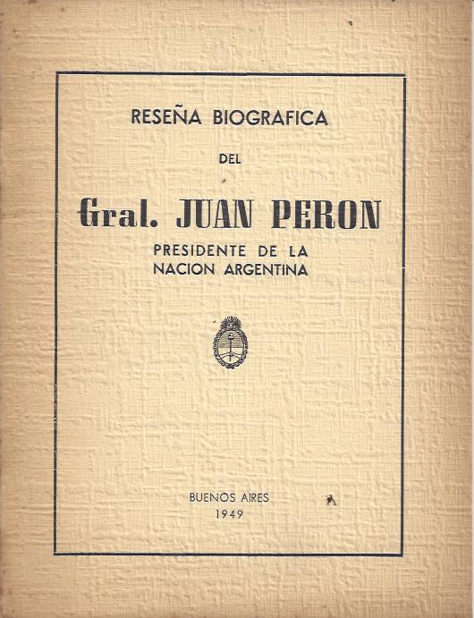 Reseña biográfica del General Juan Perón. Foto del General Perón y datos biográficos hasta la asunción del 4 de junio de 1946. Cita bibliografía de J.D.Perón.
