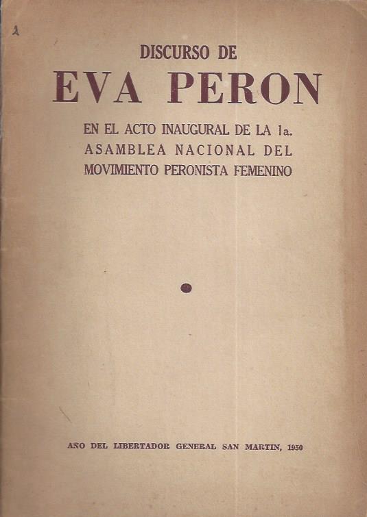 "En el acto inaugural de la Primera Asamblea Nacional del Movimiento Peronista Femenino, realizado en el Teatro Nacional Cervantes de la Capital Federal, el 26 de julio de 1949, la señora Eva Perón pronunció el siguiente discurso ante las delegaciones de todas las provincias y territorios de la República".