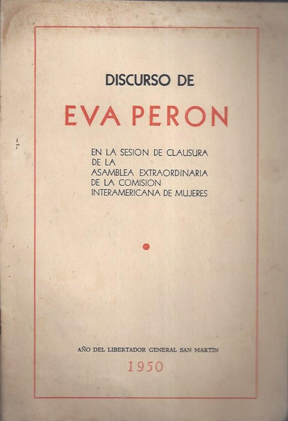 Palabras pronunciadas por la señora Eva Perón en el acto de clausura de la Asamblea Extraordinaria de la Comisión Interamericana de mujeres, realizada el 24 de agosto de 1949.