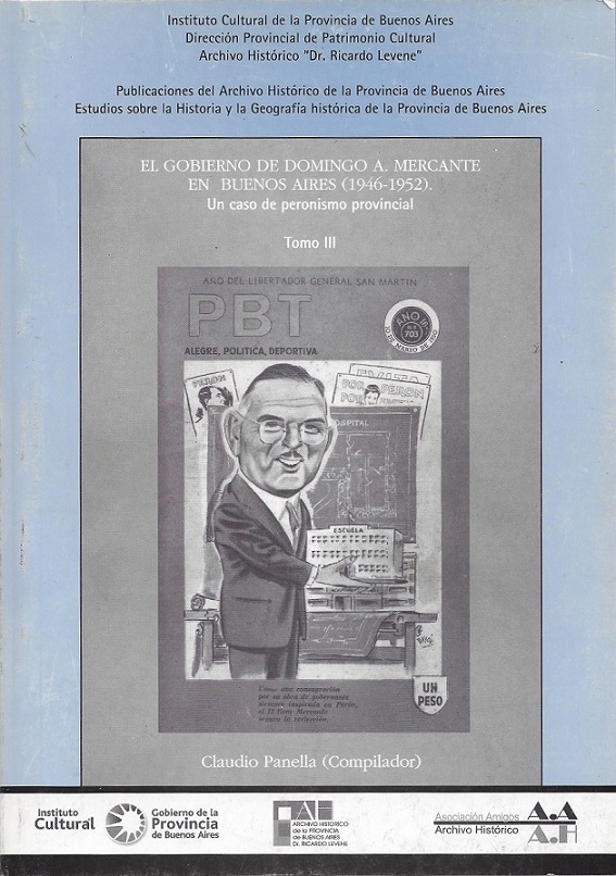 Buenos Aires: Instituto Cultural Gobierno de la Provincia de Buenos Aires, 2007. Panella, Claudio(Coordinador). El gobierno de Domingo A.Mercante en Buenos Aires(1946-1952). Un caso de peronismo provincial. Tomo 3.