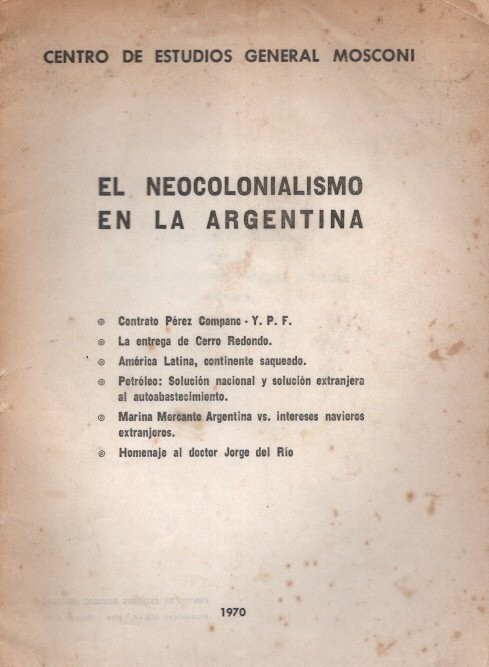 El neocolonialismo en la Argentina. Editado por Centro de Estudios General Mosconi. Buenos Aires, 1970.