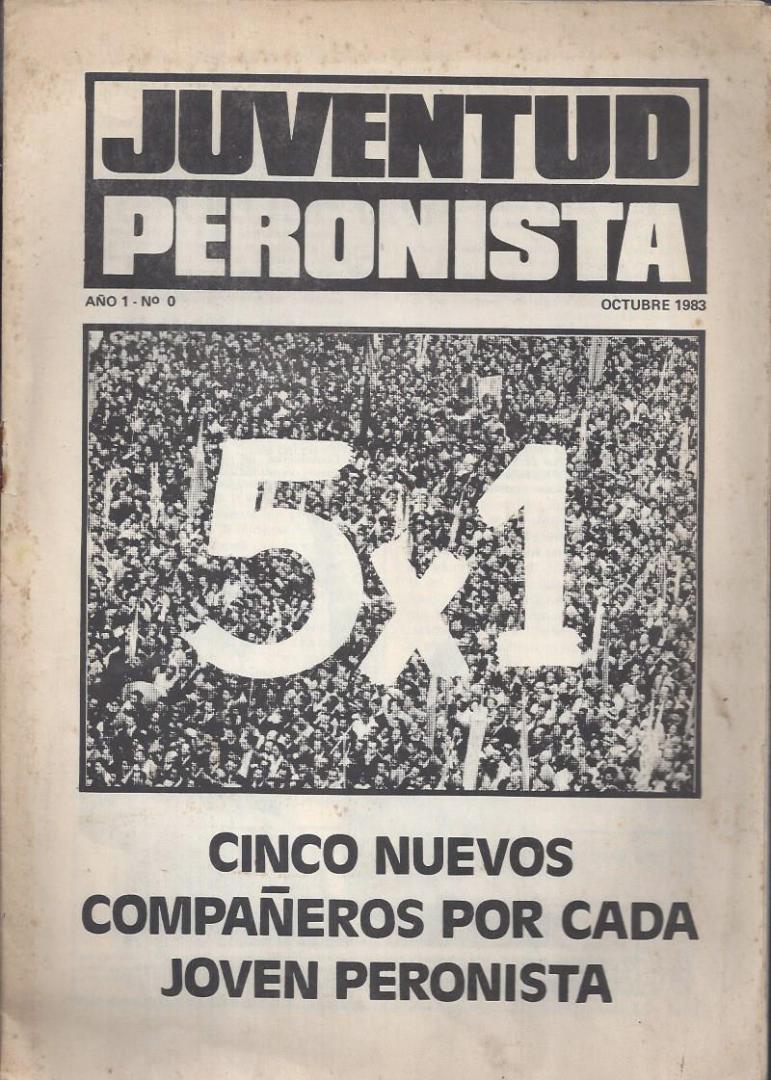 Editado por Scordamaglia, Vicente. Buenos Aires, 1983. Revista Juventud Peronista. Número 0. oct 1983