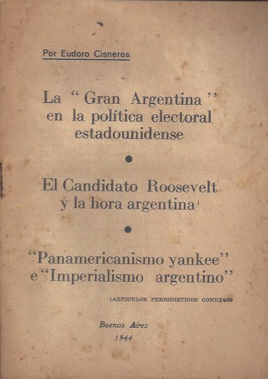 Cisneros, Eudoro. La "Gran Argentina" en la política electoral estadounidense. El Candidato Roosvelt y la hora argentina. "Panamericanismo yankee" e "Imperialismo argentino" (Artículos periodísticos conexos).