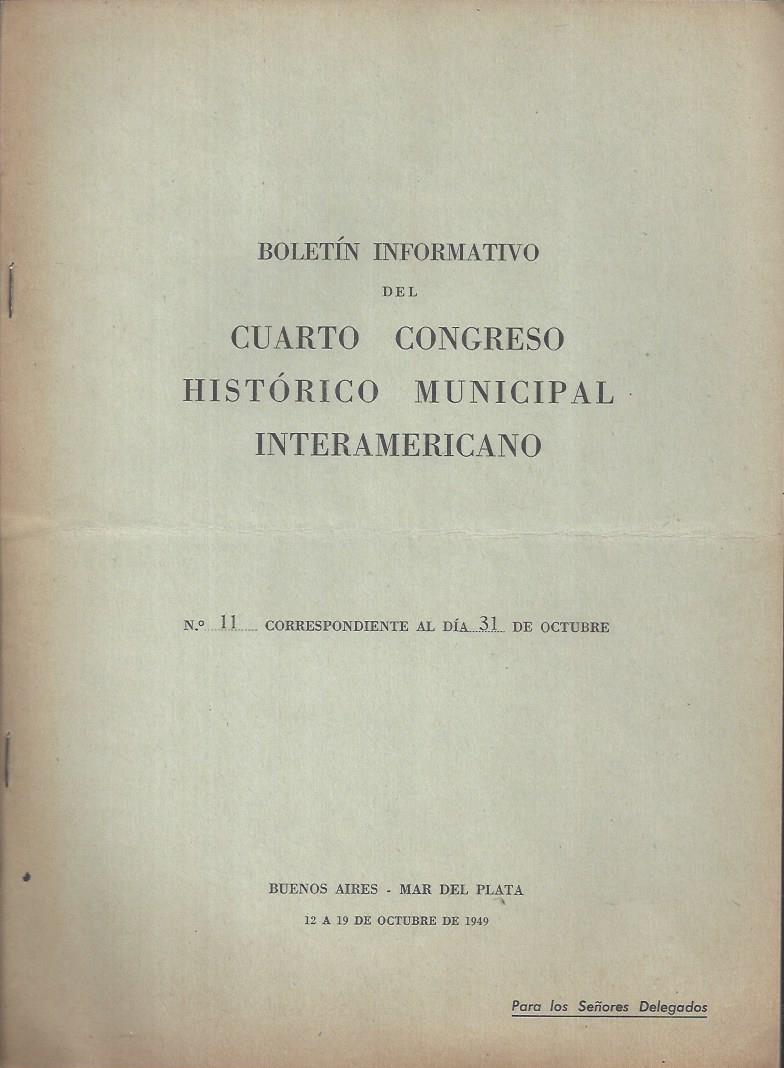 Editado por Sec.Gral Congreso Hist. Mun. Interamericano. Mar del Plata, 1949. Número 11 correspondiente al día 31 de octubre