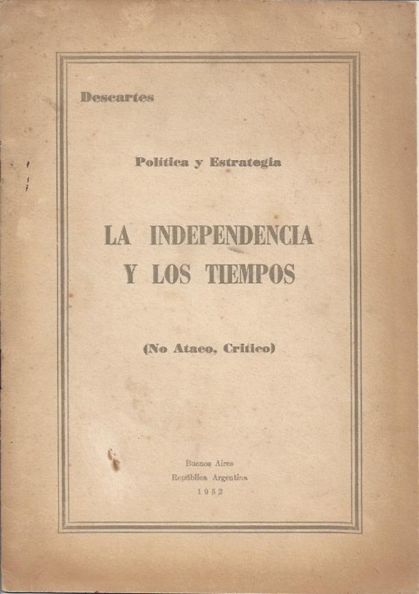 Descartes(seudónimo de J.D.Perón). «La independencia y los tiempos». En: Política y estrategia.(No ataco, critico).