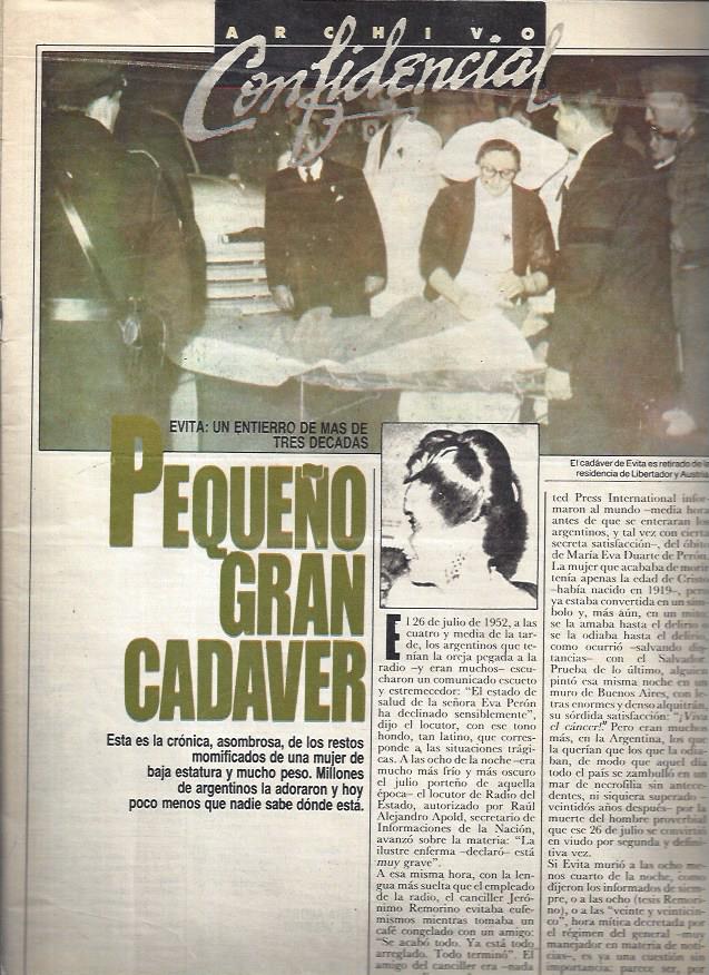 Evita: un entierro de más de tres décadas. Pequeño gran cadáver.