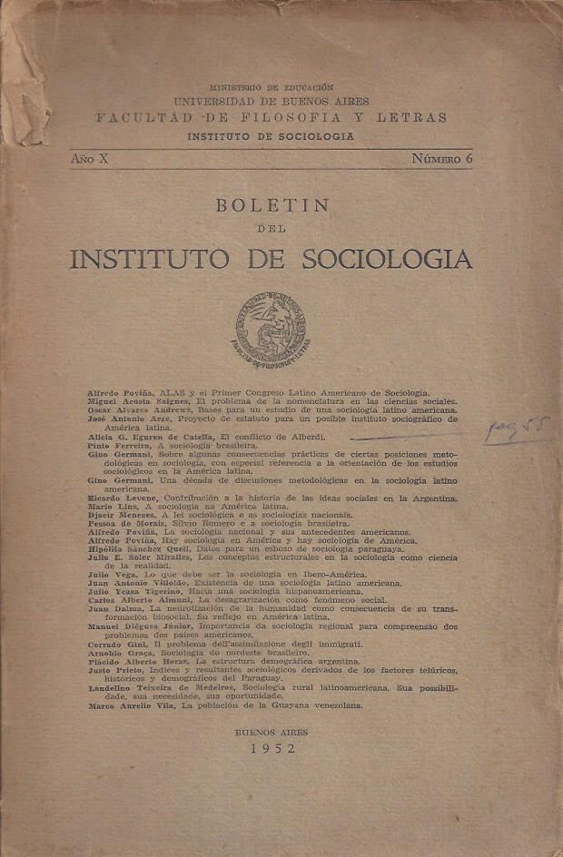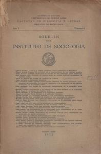 Buenos Aires, 1952. Boletín del Instituto de Sociología. Instituto de Sociología FFyL - UBA