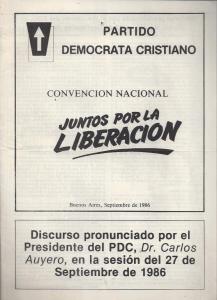 Auyero, Carlos. Discurso pronunciado por el Presidente del PDC, Dr.Carlos Auyero, en la sesión del 27 de septiembre de 1986.