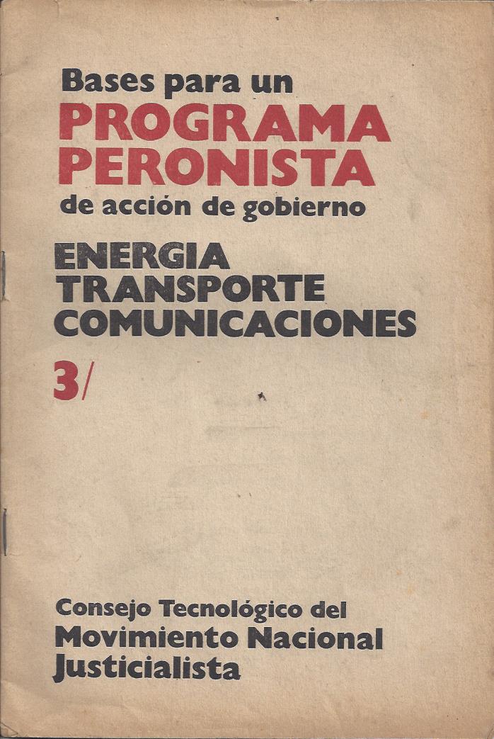 Bases para un Programa Peronista de acción de gobierno. Energía.Transporte.Comunicaciones..