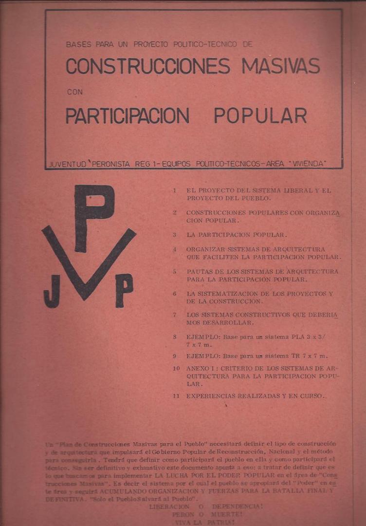 Editado por JP-Regionales I- Equipos Pol-Tecn area vivienda. Buenos Aires, 1973.