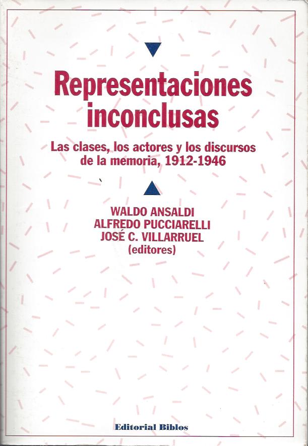 Buenos Aires: Biblos, 1995. en Ansaldi, W.; Pucciarelli, A.; Villarruel, J.(editores). Representaciones inconclusas. Las clases, los actores y los discursos de la memoria, 1912-1946.