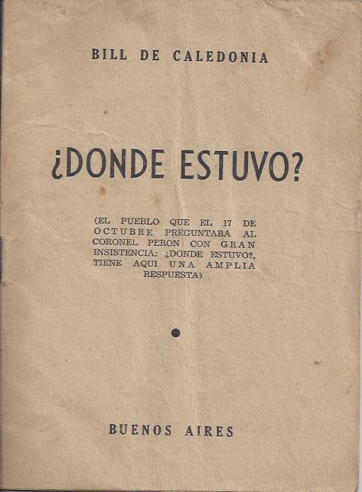 Buenos Aires: sin datos, sin fecha. (El pueblo que el 17 de octubre preguntaba al coronel Perón con gran insistencia: ¿Dónde estuvo? tiene aquí una amplia respuesta). Firmado con el seudónimo Bill de Caledonia.