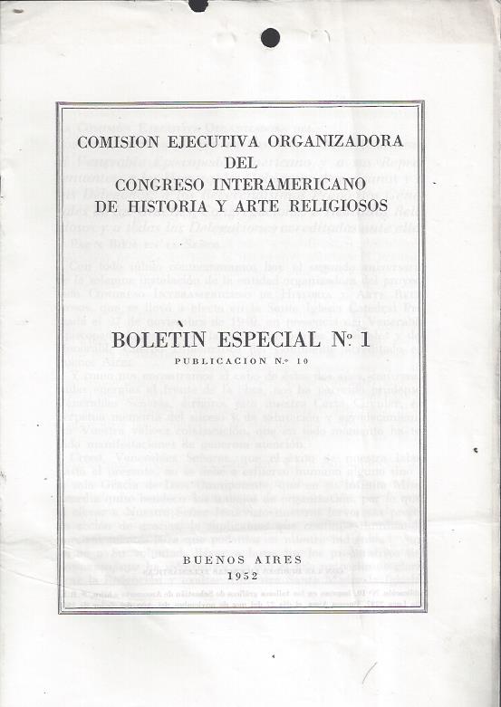 Editado por Com Org del Cong Int Historia y Arte religiosos. Buenos Aires, 1952.