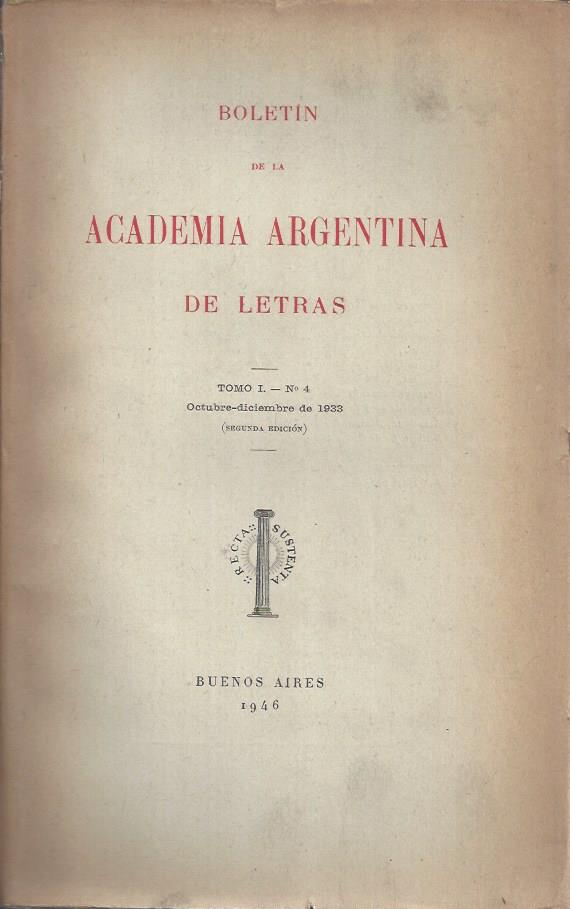Editado por Academia Argentina de Letras. Buenos Aires, 1946. Tomo I. Número 4. oct-dic 1933. segunda edición
