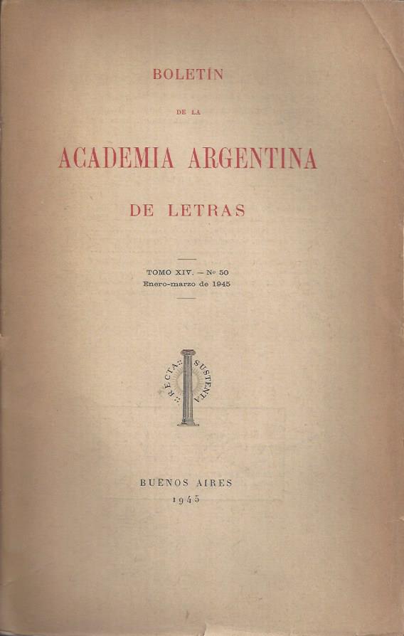 Editado por Academia Argentina de Letras. Buenos Aires, 1945. Tomo XIV. Número 50. Enero-marzo de 1945.