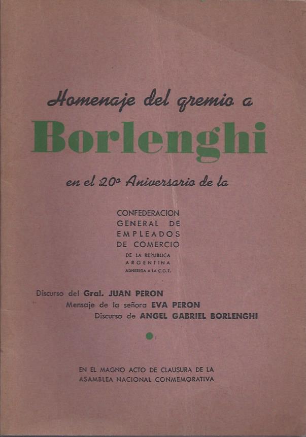 Borlenghi, Angel G. Homenaje del gremio a Borlenghi en el 20 aniversario de la Confederación General de Empleados de Comercio.