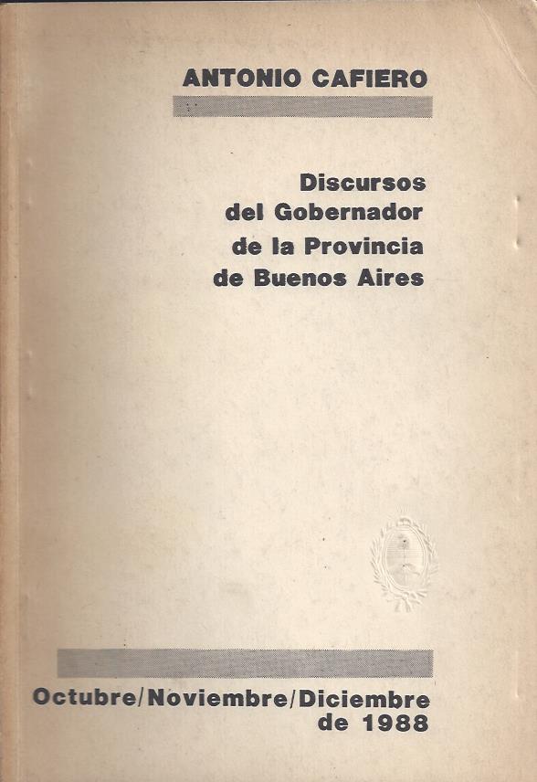 Cafiero, Antonio. Antonio Cafiero. Discursos del Gobernador de la Provincia de Buenos Aires.