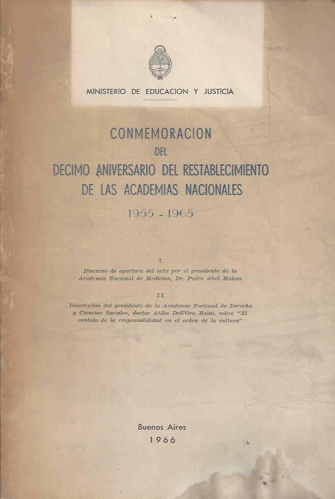 Conmemoración del Décimo Aniversario del restablecimiento de las Academias Nacionales 1955-1965.
