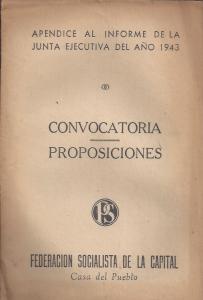 Apéndice al informe de la Junta Ejecutiva del año 1943. Convocatoria. Proposiciones. Federación Socialista de la Capital-Casa del Pueblo.