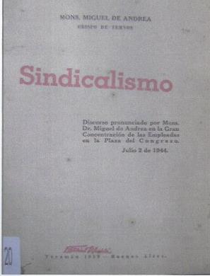 Buenos Aires: Difusión, 1944. Discurso pronunciado por Mons. de Andrea en la Gran Concentración de las empleadas en la Plaza del Congreso el 2 de julio de 1944.