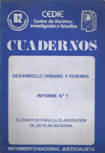 Desarrollo urbano y vivienda. Informe N° 1. Elementos para la elaboración de un plan nacional.