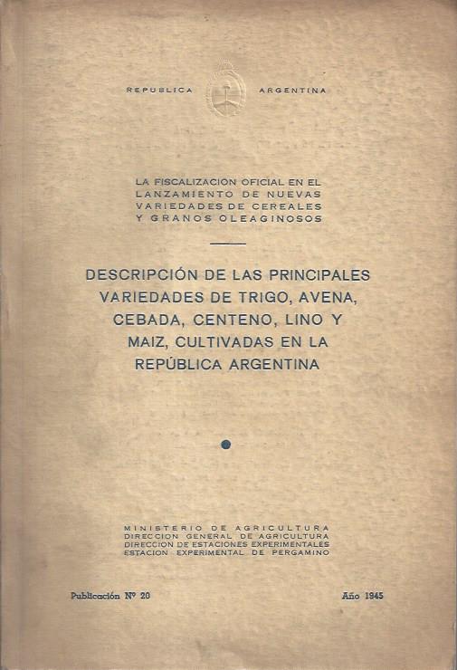 Descripción de las principales variedad de trigo, avena, cebada, centeno, lino y maiz, cultivadas en la República Argentina.