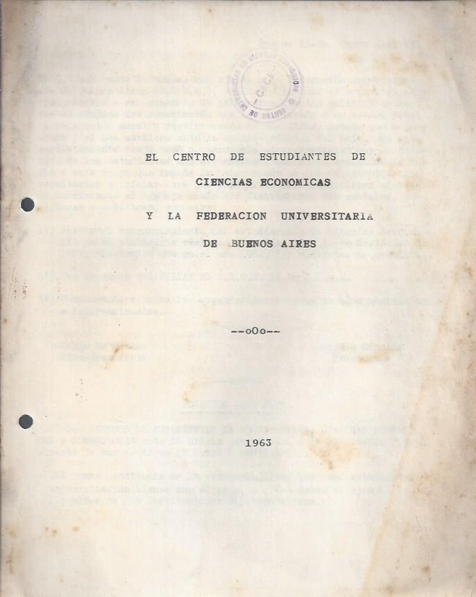 Editado por Centro de Estudiantes de Ciencias Económicas. Buenos Aires, 1963.