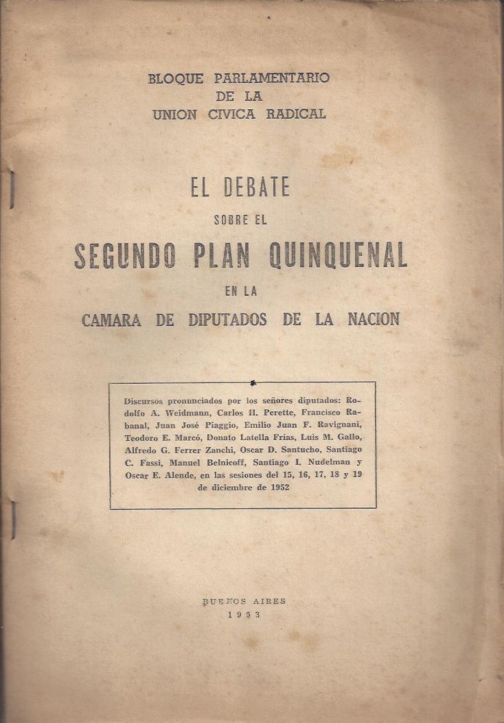 El debate sobre el segundo plan quinquenal en la Cámara de Diputados de la Nación.