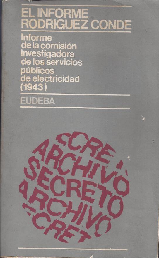 Editado por Comisión Rodríguez Conde. Buenos Aires: EUDEBA, 1974. Incluye Historia del Informe Rodríguez Conde, por Miguel A.Scenna.