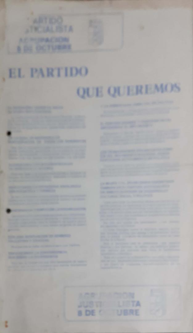 Editado por Agrupación Justicialista 8 de octubre. Buenos Aires, 1983.