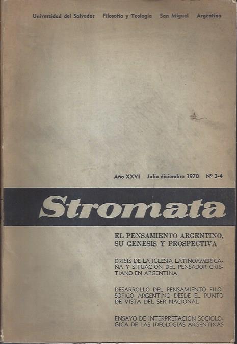Editado por Stromata. Buenos Aires, 1970. Stromata. Año XXVI. Julio-diciembre 1970. Números 3-4.