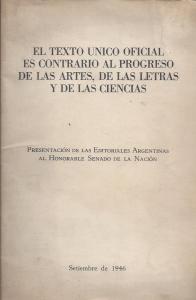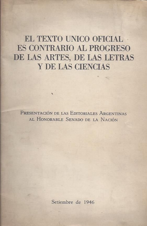 El texto único oficial es contrario al progreso de las artes, de las letras y de las ciencias. Presentación de las Editoriales Argentinas al Honorable Senado de la Nación.