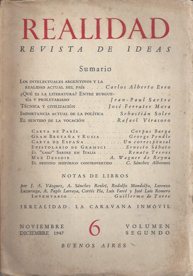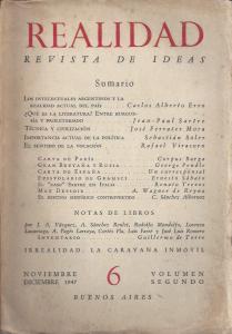 Buenos Aires, 1947. Realidad. REvista de Ideas. N° 6. Noviembre-diciembre 1947.