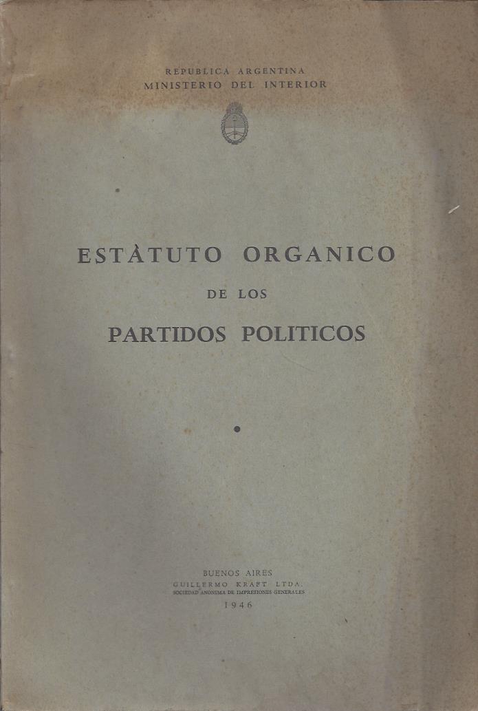 I.Decreto 33.247/44, designando la Comisión REdactora del Estatuto Orgánico de los Partidos Políticos. II.Informe de la Comisión. III. Decreto 11.976/45, aprobando los proyectos presentados por la comisión. IV. Decreto 17.427/45, modificando artículos de la Ley 8871. V. Decreto 17.428/45, modificando artículos del Estatuto Orgánico de los Partidos Políticos. VI.Decreto 23.924/45, sobre elección partidaria o primaria para precandidatos a cargos públicos electivos. VII.Decreto 24.619/45, referente a remuneración de funcionarios judiciales que subroguen a los magistrados de la Justicia Federal. VIII. Decreto 25.562/45, que deroga el decreto 11.976. IX. Decreto 13.840/46 que declara en vigencia el Estatuto Orgánico de los Partidos políticos con algunas modificaciones y los proyectos de incorporación al Código Penal de un título especial de "Delitos contra la soberanía del Pueblo" y de modificaciones a los artículso 377 y 577 del Código de Procedimientos en lo Criminal de la Capital Federal.